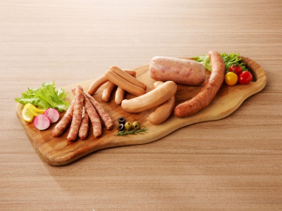 ウィンナー2種に、にんにくや香辛料を効かせた、セミドライタイプのソーセージ「クラコウ」や、豚赤身肉の塊を入れた太目のソーセージ「ビアシンケン」を組み合わせました。