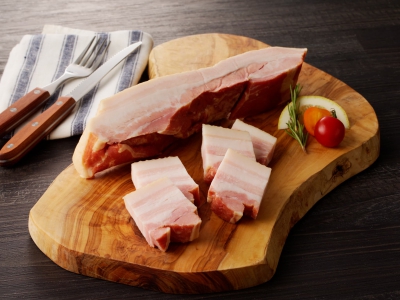 一枚づつ丁寧な塩もみと14日間の熟成により旨みを凝縮させた北海道物産展でも人気のベーコンです。