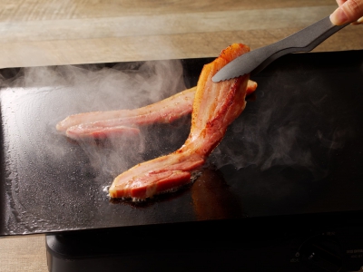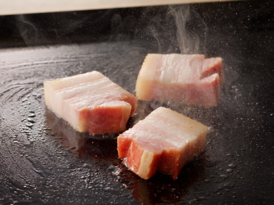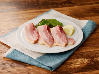 桜のスモークチップで仕上げた豊かな香りと肉・脂がバランスよく味わえる自慢のベーコンです。